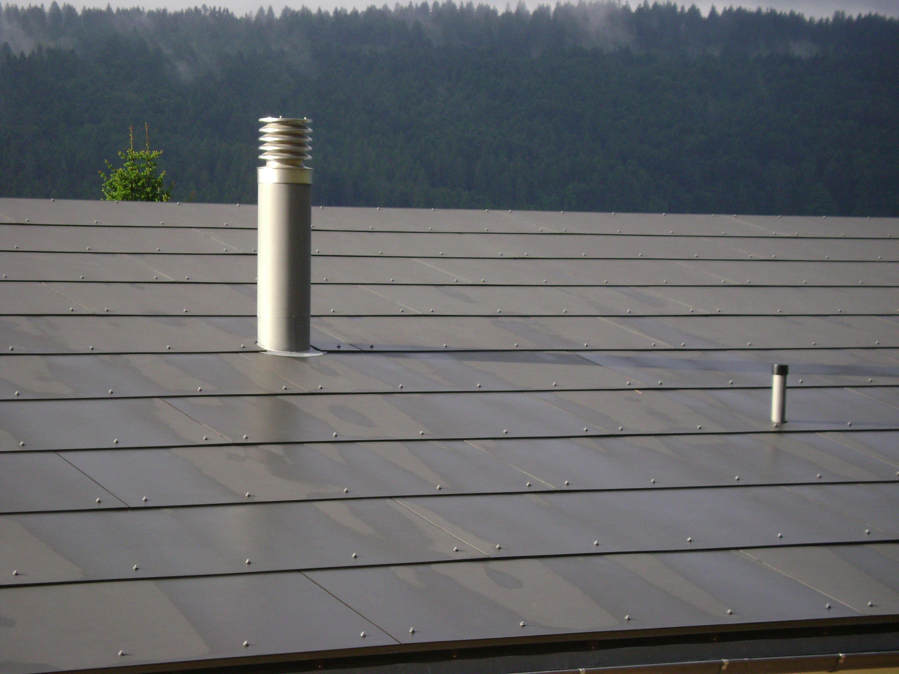 Revêtement en zinc naturel, avec placage à doubles agrafes.